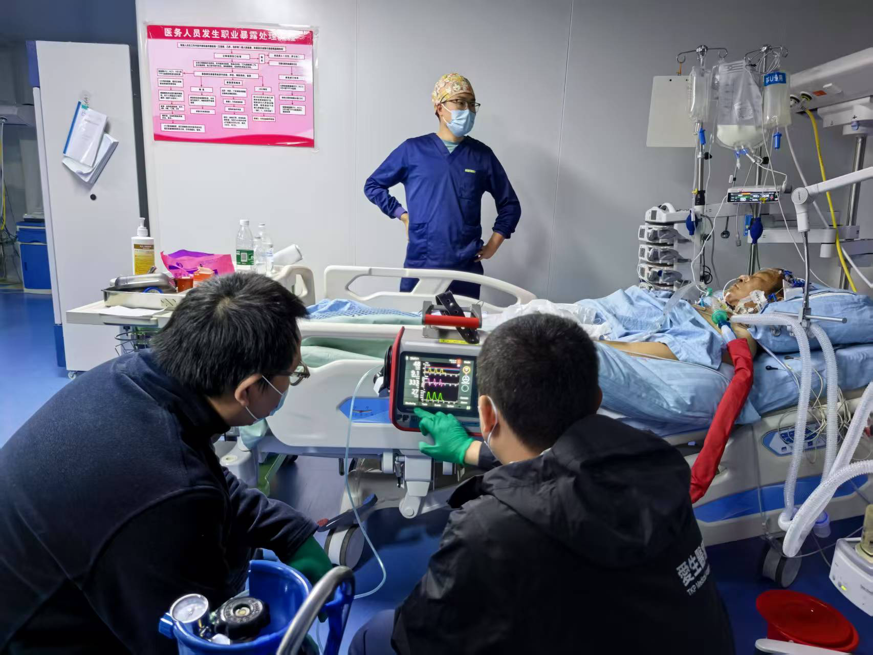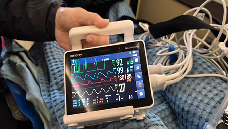 Above the clouds, the team closely monitors oxygenation and circulation,every vital sign watched with unwavering focus.